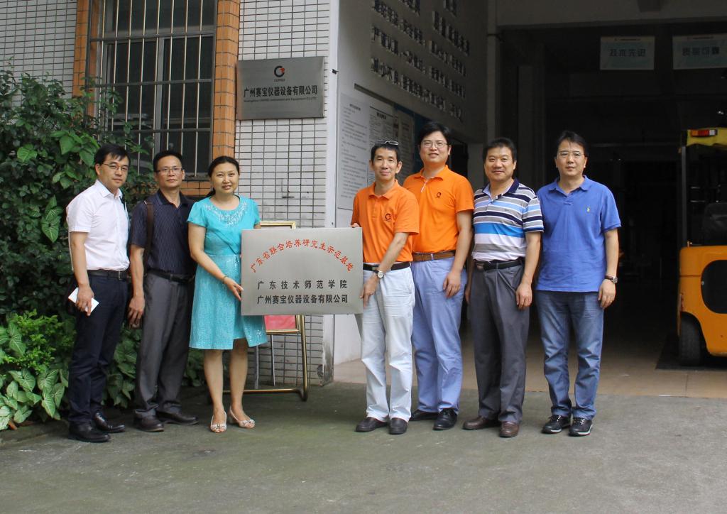 7月6日下午,taptap点点体育执行院长徐小平教授带队前往广州赛宝仪器设备有限公司,举行广东省联合研究生基地挂牌仪式,同行的有韩克副院长、冯明库副院长、电子系主任钟旭教授,通信系主任蔡君博士等。