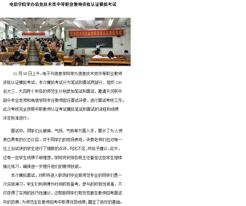 电信学院举办信息技术类中等职业教师资格认证模拟考试