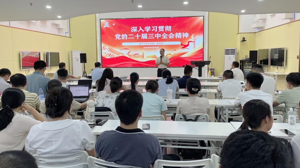 会上,学院党委书记罗旭辉对学习宣传贯彻党的二十届三中全会精神作了动员部署。他强调,党的二十届三中全会是在以中国式现代化全面推进强国建设、民族复兴伟业的关键时期召开的一次重要会议,全会审议通过的《中共中央关于进一步全面深化改革、推进中国式现代化的决定》是指导新征程上进一步全面深化改革、推进中国式现代化的马克思主义纲领性文献。学院全体教职工要把学习好贯彻好党的二十届三中全会精神作为当前和今后一个时期的重大政治任务。