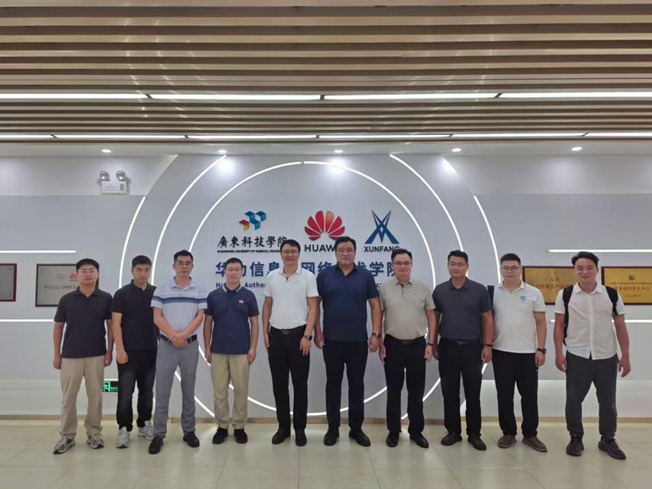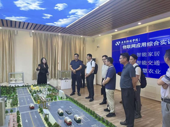 交流活动首站,广东科技学院校长助理、计算机学院院长田立伟教授,计算机学院刘肃平副院长等陪同单纯院长一行参观了该校华为ICT学院、腾讯云产业学院、数字安全产业人才基地、360数字安全科产教融合创新中心。在物联网应用综合实训室、华为鲲鹏应用开发实验室、网络攻防实验室等前沿实践平台,代表团深入观摩了智能设备联调、鲲鹏生态开发、攻防演练模拟等教学场景。双方就产业需求导向的人才培养体系建设、学生实习实训基地建设、学科竞赛等议题展开探讨和交流。